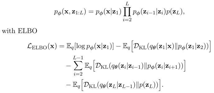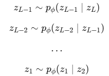 ๋ณต์กํ ๊ตฌ์กฐ์ ๋ํด์ ํ์ธต์ z ๋ก ๋ถ์กฑํด์ latent ๋ฅผ ์ฌ๋ฌ์ธต์ผ๋ก ์์์ฌ๋ฆฌ๋ ๊ตฌ์กฐ์ด๋ค.