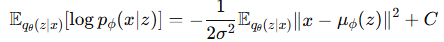 ์์์ ์ดํด๋ณธ Reconstrcution term ์ด๋ค. pฯ(xโฃz)๊ฐ ๊ฐ์ฐ์์์ด๋ผ๊ณ ํ์ผ๋ ๋ก๊ทธ๋ฅผ ํ๋ฉด