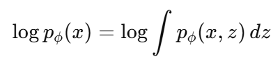 -> ์์ฐ์ค๋ฝ๊ฒ log p(x) ์ ์ต๋ํ๊ฐ ๋ถ๊ฐ๋ฅํด์ง๋ค.
