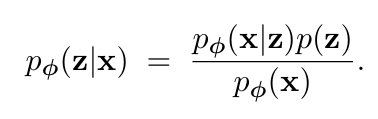 bayes rule ๊ณ์ฐ์์ ๋ณด๋ฉด , ๋ชจ๋ ์กฐํฉ (z) ๋ฅผ ํ๋์ฉ ๋ค ๋ฃ์ด๋ณด๊ณ -> ์ด๋ ์กฐํฉ์ด ์ด๋ฏธ์ง(x) ๋ฅผ ๋ง๋ค ํ๋ฅ ์ด ๋์์ง๋ฅผ ๊ณ์ฐํ๋๊ฒ