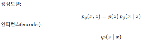 x( ๋ฐ์ดํฐ ) -> q(z|x) ( ํ์ต๋ ์ธ์ฝ๋ ) -> z ( latent space ) -> p(x|z) -> x_hat ( ๋ณต์๋ ๋ฐ์ดํฐ ) ํํ์ด๋ค.