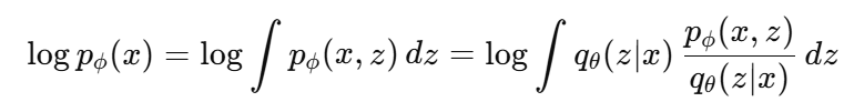 --> ๋ชจ๋ ๊ฐ๋ฅํ z์ ๋ํด์, ๊ทธ z๊ฐ x๋ฅผ ๋ง๋ค์ด๋ผ ํ๋ฅ ์ ๋ค ๋ํ ๊ฐ์ด ์ปค์ง๋๋ก ๋ชจ๋ธ์ ํ์ต์ํค๊ณ ์ถ์๊ฒ. )