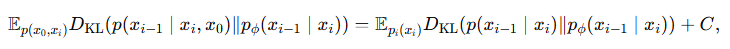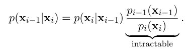 “intractable ํ p(xi−1โฃxi) ๋์ , ๊นจ๋ํ ๋ฐ์ดํฐ x (=x0)์ ์กฐ๊ฑด์ ๊ฑด
