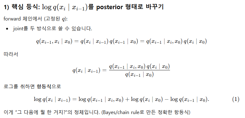 - **Forward(๊ณ ์ , encoder ์ญํ )**๋ “์ ์ด ์ปค๋”์ด๋๊น p(xiโฃxi−1)๋ก ํ๊ธฐ
