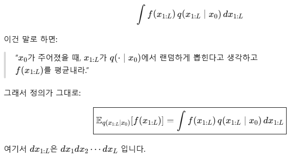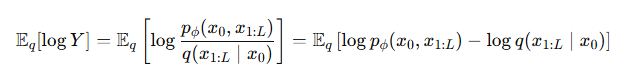 ๊ทธ๋ฆฌ๊ณ ์ฌ๊ธฐ์ ์์์ ๋ถํฌ q(x1:l | xo ) ๋ฅผ ๋ฃ๋๋ค. ๊ทธ๋ฌ๋ฉด