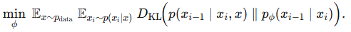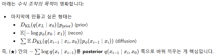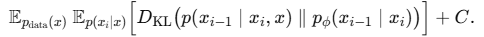 ๊ทธ๋์ p(xi-1|xi) ์์ฒด๊ฐ intractable ํ ํํ๋ผ์ ๊ฒฐ๊ตญ ์ง์ KL ์ ๊ณ์ฐํ๊ธฐ ์ด๋ ต๋ค.