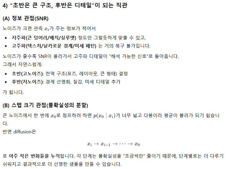๊ทธ๋์ ๊ฐ๊ฐ denoisining step ์ VAE ์ฒ๋ผ ํ ๋ฒ์ ์ ์ฒด ์ํ์ ์์ฑํ๋ ๊ฒ ๋ณด๋ค ํจ์ฌ ๋ค๋ฃจ๊ธฐ ์ฝ๋ค๊ณ ์์ ๋์ด ์๋ค.
