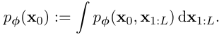 p(xo , x1:L ) vs p_phi ( xo , x1:L )