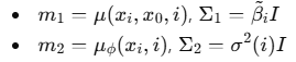 ํ์ฌ noise ์ด๋ฏธ์ง xi ๋ฅผ ์ ๋ ฅ์ผ๋ก ๋ฐ์ -> ์ด์ ๋จ๊ณ x_(i-1) ์ ํ๊ท /๋ถ์ฐ์ ์์ธกํ๋ ํํ์ด๋ค.