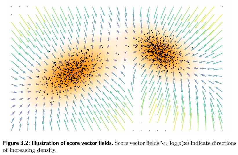 - log p_phi (x) : 학습할 score ( 모델이 제시하는 확률이 증가하는 방향장 )