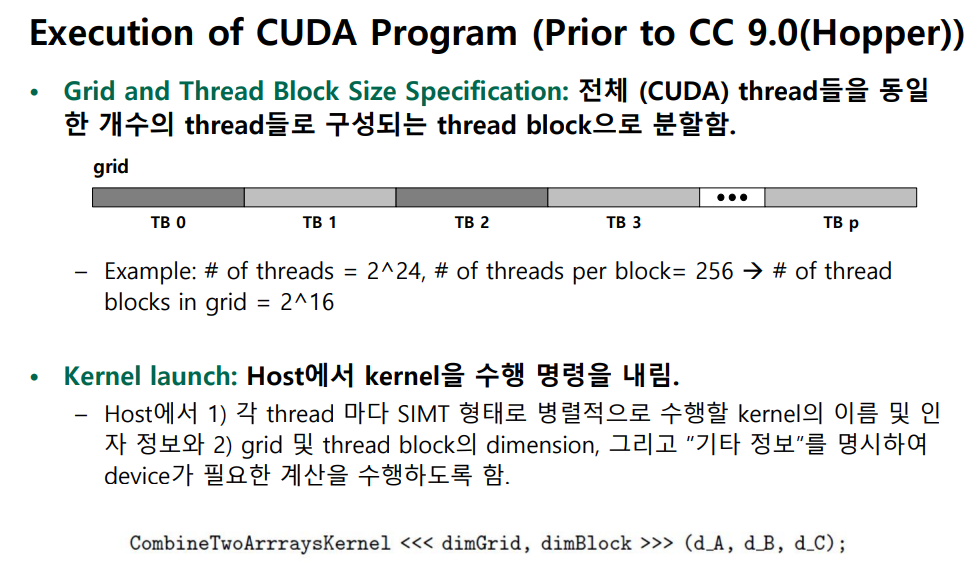 CUDA 에서는 특별한 함수 하나를 GPU 에 올려서 , 그 함수를 엄청 많은 thread 가 동시에 실행하게 한다.