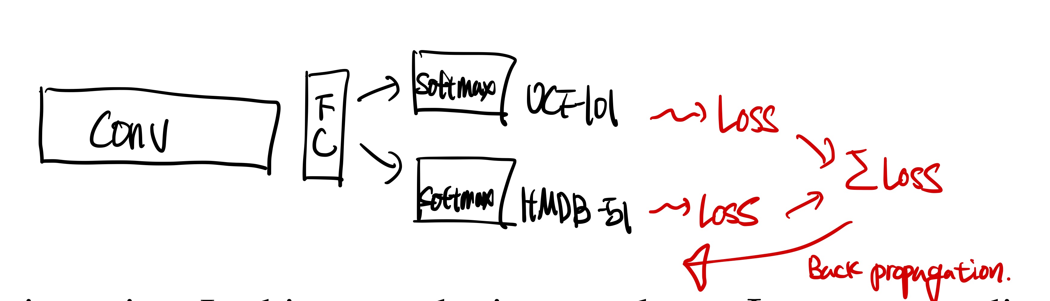 위 그림과 같이 데이터셋 별로 다른 softmax 를 통해서 클래스를 분류하고 각각의 loss 를 더해 업데이트 해주는 방식을 사용한다.